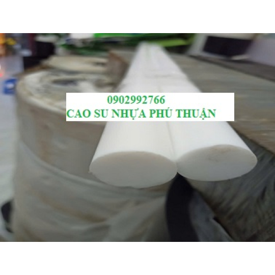 Teflon trắng dạng cây tròn đặc, nhựa telon dạng tấm, khả năng chịu nhiệt, cách điện, thường dùng trong ngành công nghiệp, ngành thực phẩm.